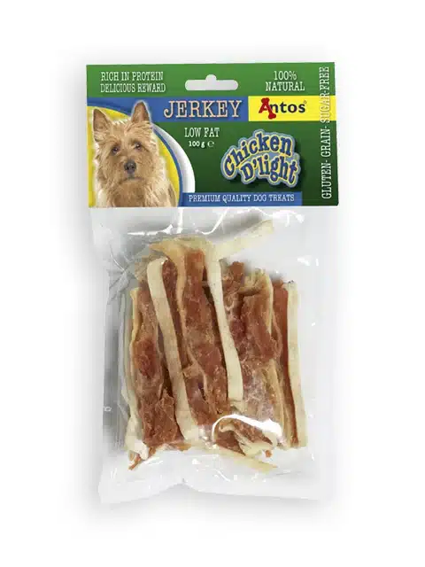 Het is belangrijk je hond te belonen als hij of zij braaf is geweest. En geen betere manier om dat te doen dan met onze Chicken D’light Jerkey. Deze combinatie van kip en runderhuid zit vol smaak en bevat weinig vet.
