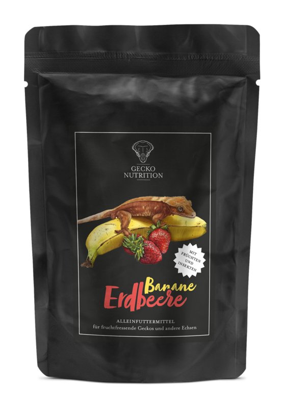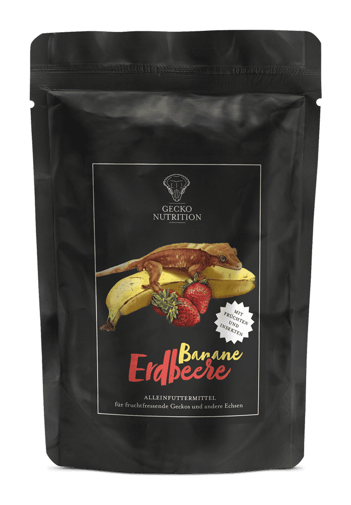 With its banana-strawberry flavor, Gecko-Nutrition brings a fruity, fresh and balanced blend of food directly into your terrarium. The complete feed produced in Germany is specifically tailored to the needs of your gecko and is a real protein bomb due to its high insect content, but the flesh is also accepted and loved by numerous other fruit-eating geckos.