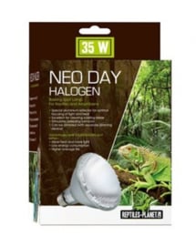 De Reptiles Planet Neo Day Halogen is de ideale warmtespot voor in uw terrarium. Door de special ingebouwde aluminium reflector wordt het licht gebundeld, waardoor er een sterk warmtepunt ontstaat. Omdat de lampen middels halogeen werken zijn zij relatief energiezuinig en produceren zij meer licht en warmte dan de doorgaans gebruikte gloeilampen.