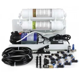 El Repti Rainforest pro tiene una bomba muy fuerte con la que se pueden provistos de pulverizadores a varios terrarios. Además, este sistema cuenta con dos filtros internos hechos de netwave y carbón activado que filtra cualquier cal, suciedad y contaminantes del agua que puedan estar presentes. Por lo tanto, la pulverización con agua descalcificada no es necesaria. Esto se filtra automáticamente. Este sistema también se puede conectar a un grifo, por lo que no tiene que rellenar constantemente el tanque de agua.